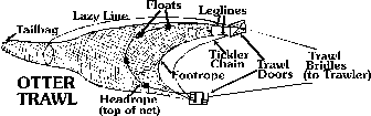 tugs on the "trawl bridles", the doors not only make a spread in the front end of the net, but also make the net dive to the bottom. That's where the shrimp are. The